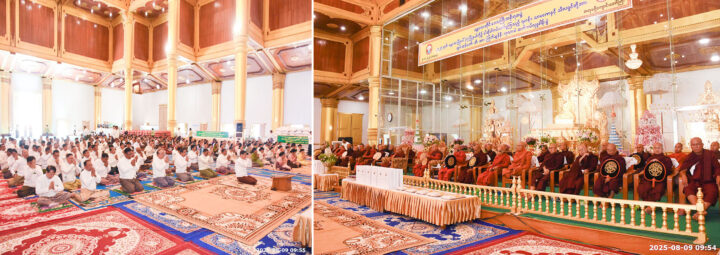 The congregation took the Five Precepts from Rector Sayadaw Dr Bhaddanta Kesara of the State Pariyatti Sasana University (Mandalay), and the region chief minister briefed on the donation.