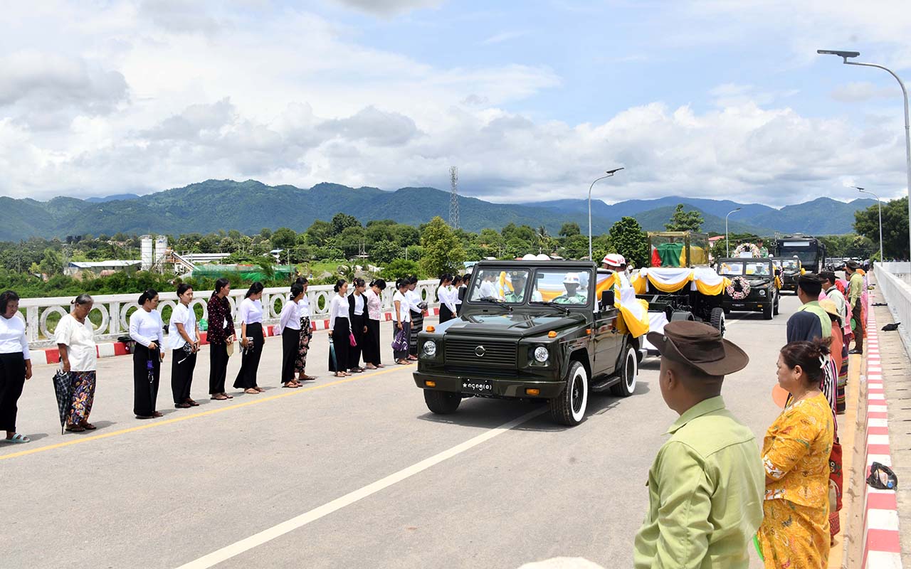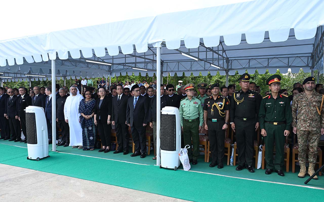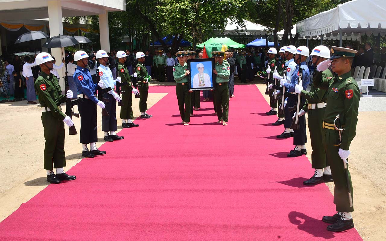 Eight Union Ministers conveyed the remains onto the artillery carrier to send it to the Tatmadaw Military Cemetery (Nay Pyi Taw). Meanwhile, the Guard of Honour saluted the remains and conducted other funeral conveyance procedures.