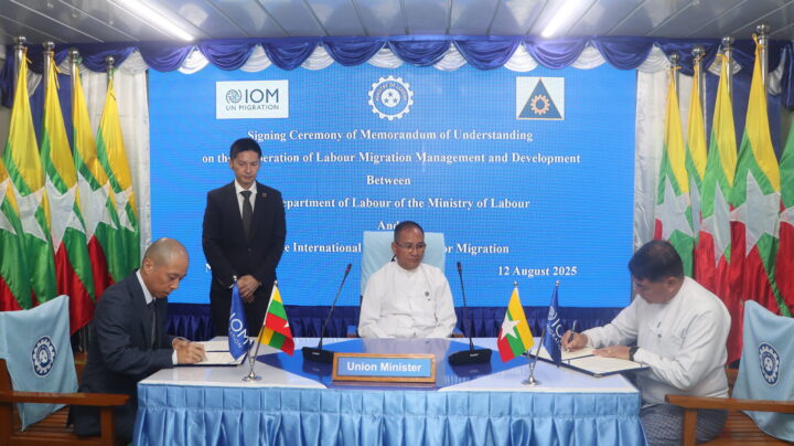 After the meeting, the Union minister attended the signing ceremony of an MoU between the Department of Labour and IOM at the meeting hall of the temporary office of the ministry.