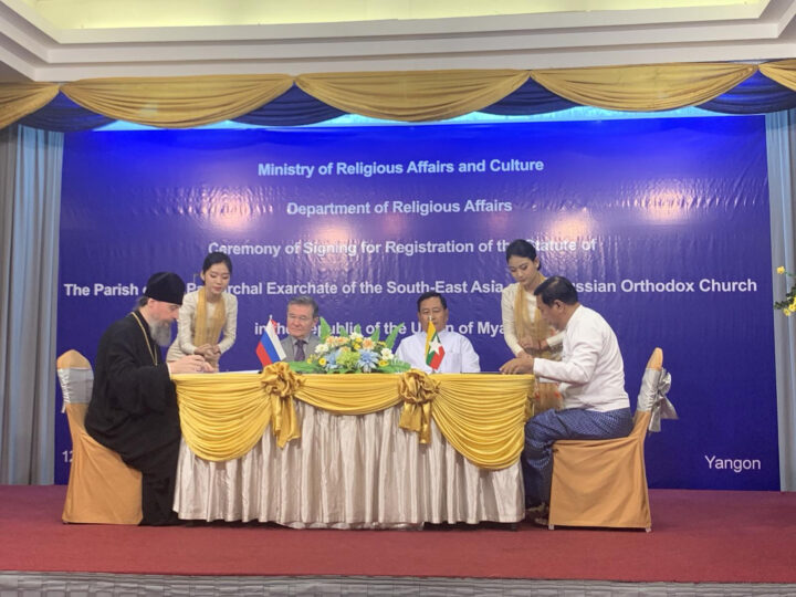 The Ministry of Religious Affairs and Culture organized a ceremony to sign the registration of the Statute of the Parish of the Patriarchal Exarchate of South East Asia, Russian Orthodox Church, at the Summit Parkview Hotel in Yangon yesterday.