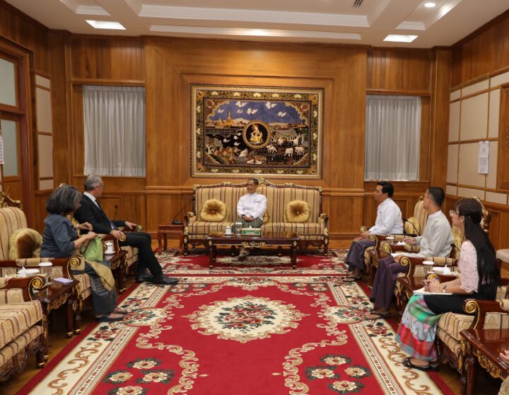 U Ko Ko Hlaing, Union Minister for the Ministry 2 of the President’s Office, received Mr Michael Dunford, World Food Programme (WFP) Representative and Country Director, United Nations Resident Coordinator ad interim and Humanitarian Coordinator ad interim, yesterday afternoon at the parlour of the Office of the National Defence and Security Council in Nay Pyi Taw.