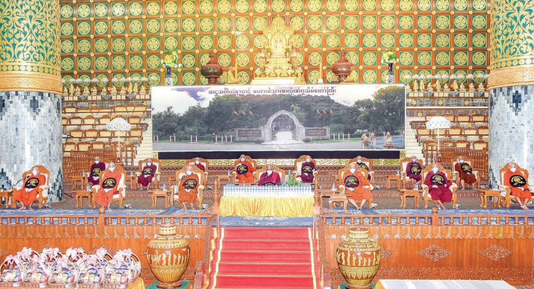 State Sangha Maha Nayaka Committee Secretary Sayadaw Thanlyin Minkyaung Sayadaw Agga Maha Pandita Agga Maha Saddhamma Jotika Daja Bhaddanta Candima Bhivamsa led the recitation.