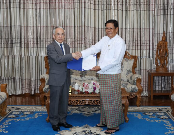 The Representative of the United Nations Development Programme (UNDP) to Myanmar, Mr Norimasa Shimomura, presented his Credentials to U Than Swe, Union Minister for Foreign Affairs of the Republic of the Union of Myanmar, at the Ministry of Foreign Affairs in Nay Pyi Taw yesterday.