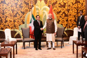 Also, present at the meeting were Commission Secretary and Joint Executie Chief General Ye Win Oo, members of the high-level Myanmar delegation, Union ministers, the Myanmar Ambassador to China and senior Tatmadaw officers. The Indian Prime Minister was accompanied by officials from the Indian government.