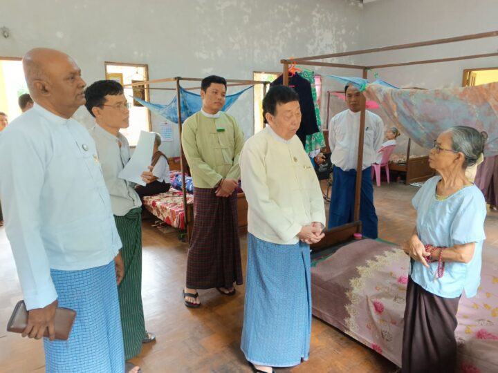 During the visit at Kyauktan Home for the Aged, the inspection team met elderly residents in their living quarters and assessed a range of conditions, including the provision of healthcare services, food and nutritional support, access to clean drinking and household water, freedom of religion and belief, and the overall hygiene and sanitation standards of dormitories, bathrooms, toilets, and kitchens. They also inquired about arrangements for recreation and relaxation, occasional counselling, the accessibility of pension payments for eligible residents, and the availability of social pension support for those aged 85 and above. The team extended warm words of encouragement to 22 elderly individuals residing at the facility.
