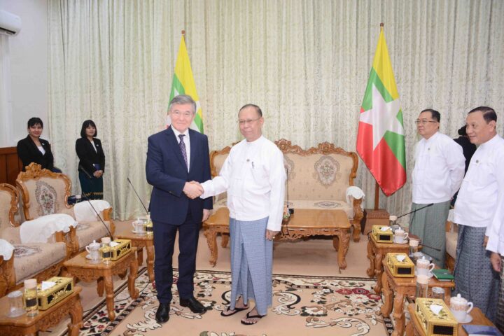 Union Election Commission Chairman U Than Soe received Russian Federation Ambassador Mr Iskander Azizov yesterday morning at the guest hall of the Union Election Commission Office in Nay Pyi Taw.