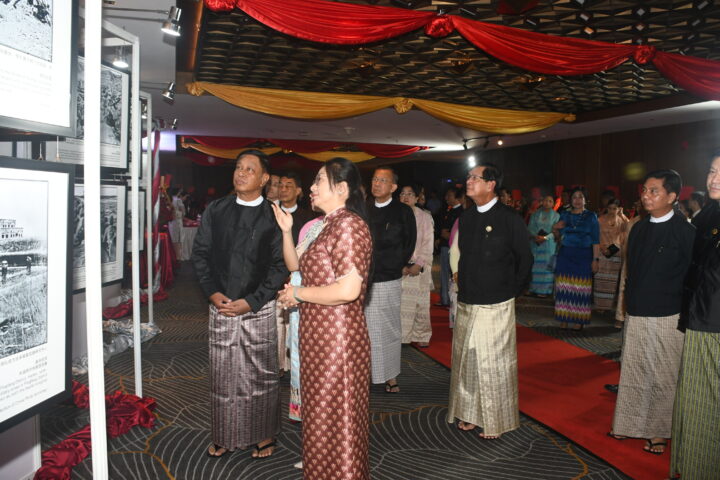 Chinese Ambassador to Myanmar Ms Ma Jia and officials welcomed the Union minister and his wife and attendees, and they viewed the photos depicting the history of China.