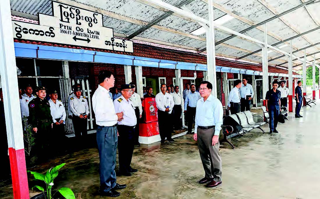 A CTING President of the Republic of the Union of Myanmar, Chairman of the State Security and Peace Commission of the Republic of the Union of Myanmar, Senior General Min Aung Hlaing, accompanied by Commission Secretary and Joint Executive Chief General Ye Win Oo, commission members, Union ministers, senior Tatmadaw officers from the Office of the Commander-in-Chief and officials, inspected the PyinOoLwin railway station yesterday afternoon.