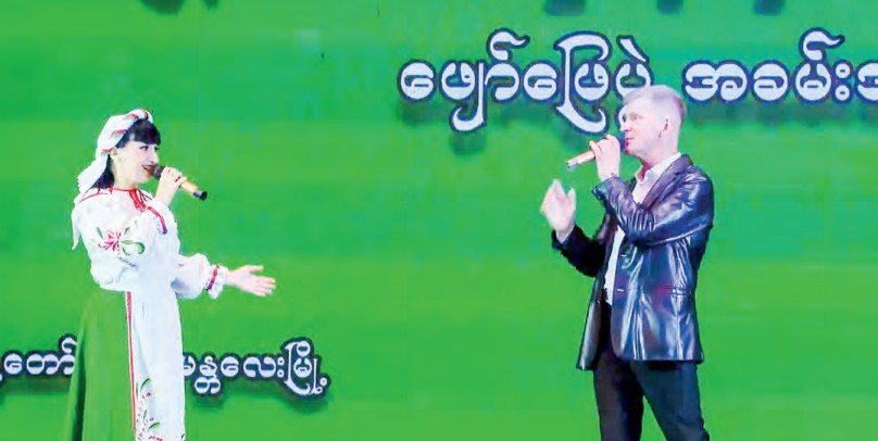 Belarusian singers Ms Nadezhda Bryleva and Ms Anzhelika Zaitseva led by Belarusian musician-cum-vocalist Mr Vladimir Sukolinsky performed traditional songs, modern songs and the songs composed about Myanmar.