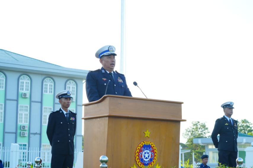 Director-General Commodore Tet Lwin Tun of the Myanmar Coast Guard then delivered a speech to commemorate the fourth Anniversary of the Myanmar Coast Guard.