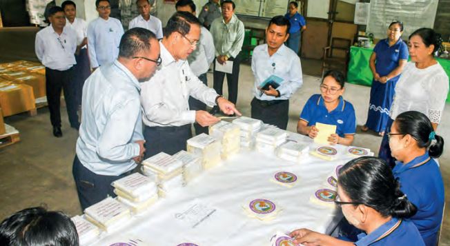 UNION Minister for Information U Maung Maung Ohn inspected the Aung San Printing House under the Printing and Publishing Department in Insein Township and the Wazira Cinema upgrading work site in Kyauktada Township of Yangon Region yesterday.
