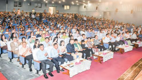Union Minister for Information U Maung Maung Ohn and Yangon Region Chief Minister U Soe Thein presented the flower basket to the artistes.
