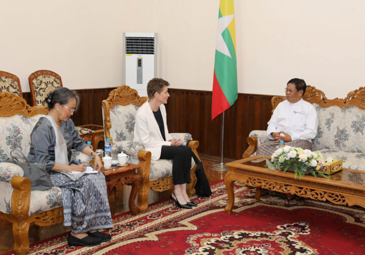 U Than Swe, Union Minister for Foreign Affairs, received Ms Gwyn Lewis, United Nations Resident and Humanitarian Coordinator ad interim (UNRC/HC ai), yesterday at the Ministry of Foreign Affairs in Nay Pyi Taw.