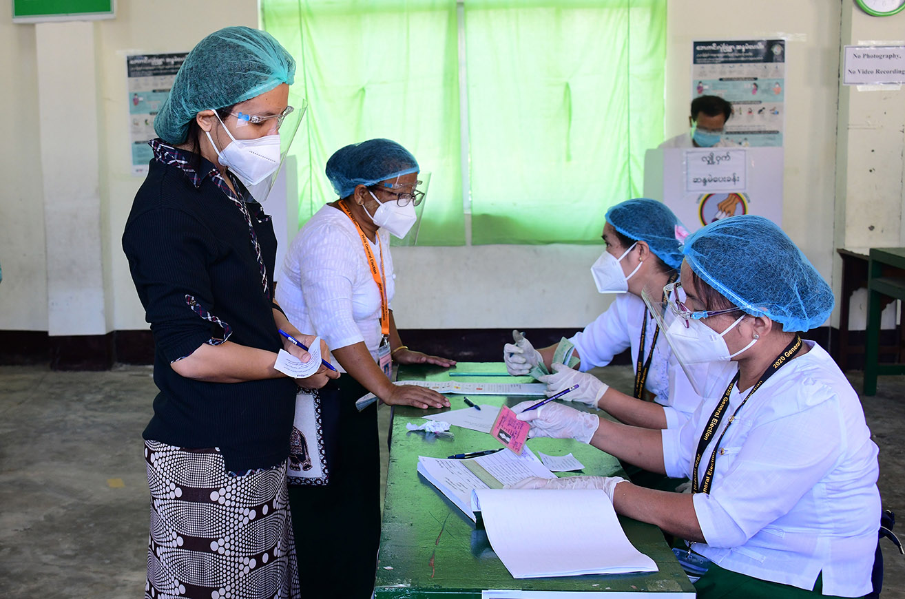Election officials and staff members, local and foreign observers, and political parties’s representatives and journalists were present to observe voting at polling stations across Myanmar.