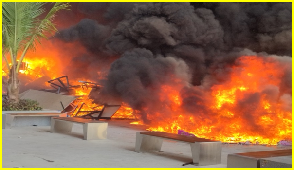 Yesterday, the authorities demolished one four-storey building, one three-storey building and eight two-storey buildings, totalling ten buildings in Area 3, and a total updated number of 351 buildings out of 635 illegal buildings have been demolished in the KK Park area. To prevent future reuse of the materials in online scams and gambling activities in KK Park and Shwe Kokko areas, the seized materials were incinerated systematically.