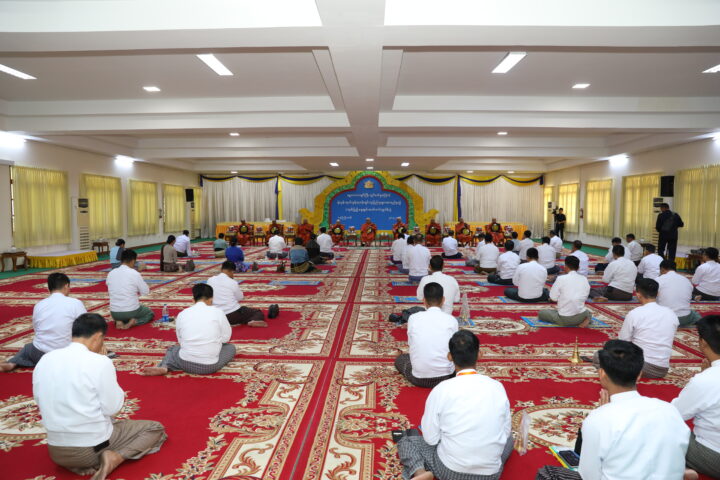 Attendees first observed the Five Precepts, administered by Presiding Patron Uppatasanti Pagoda Ovadacariya Sayadaw Abhidhaja Maharattha Guru Dr Bhaddanta Adiccavanssa from Thirimingala Wegyi Monastery in Pobbathiri Township, while listening to the Metta Sutta recited by the Sayadaws.