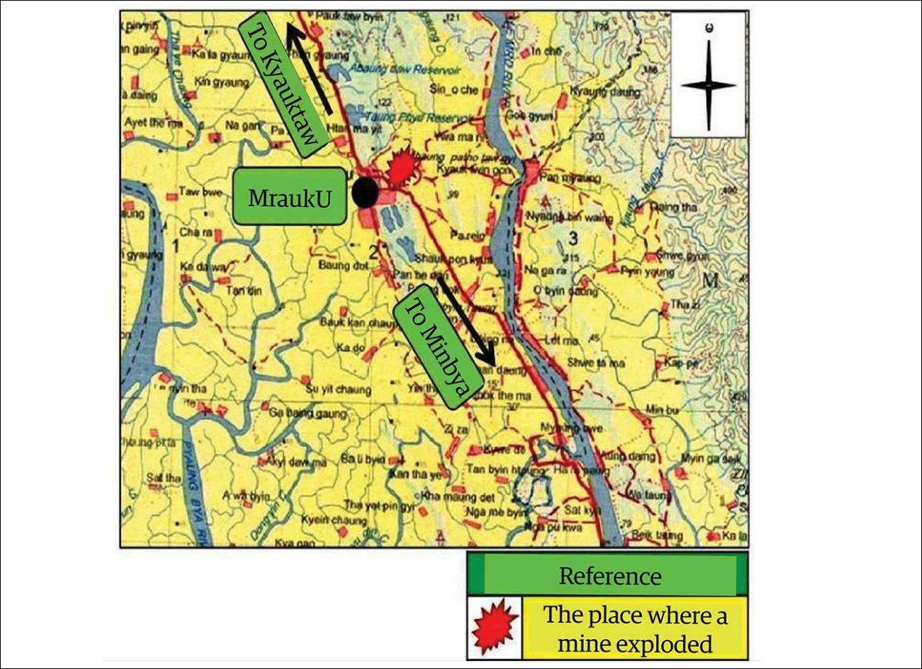 The vehicles were carrying families of MraukU police officers back from the local market when the explosives were set off at 9:45 a.m. near Takya Mahn Aung Pagoda. Myanmar Police Force reports that while the vehicles were damaged no person was hurt.