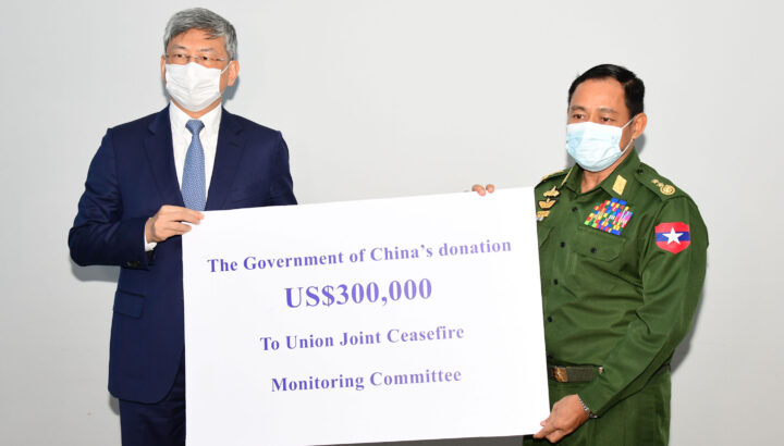 Chinese government donated US$300,000 to the Joint Monitoring Committee on Ceasefire yesterday in support of the committee’s ceasefire efforts with the ethnic armed organizations.