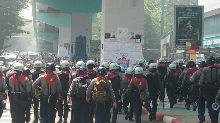 Moreover, about 300 peole protested in front of the Pauk township police station of Magway Region, and the police used tear gas to disperse the crowds. Meanwhile, the people gathered in front of the Thiho Shin pagoda of Pakokku township and the security members used the sound bombs to disperse and detained six men.