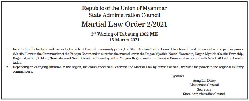 Martial Law Order 2/2021 #The Global New Light of Myanmar