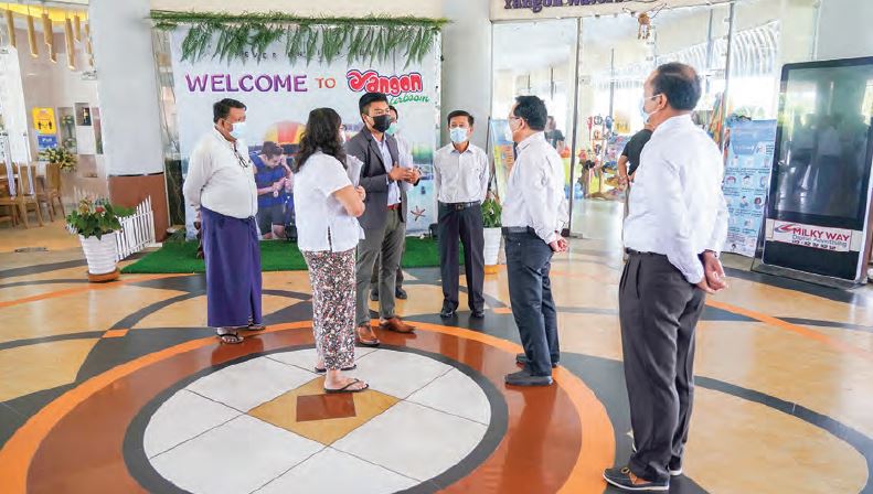 At the Yangon Waterboom in Dawbon Township, the Union Minister inspected the prepara-tions of the Waterboom to be able to reopen soon and discussed to make sure the water purification system to enable to ensure the health and safety of the visitors. Afterwards, he met officials from the Tourism Development Centre on Bosunpat street. During the meeting, the Union Minister stressed the need to comply with the ministry and the government’s policy, follow the rules and orders under the Civil Service Law, and build mu-tual trust among the officers to develop the tourism sector.