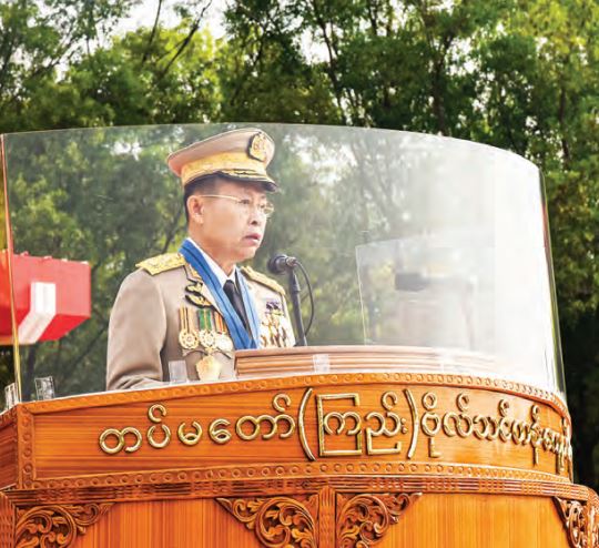 The Vice-Senior General continued to say that the Tatmadaw is systematically formed under rules and disciplines. Military discipline is the backbone of the Tatmadaw. In serving the duty, they have to strictly abide by prescribed disciplines and orders. There are two forms of disciplines that urged them not to do and to do. Abiding by the disciplines can initiate good morality and obedience. Only when everybody follows disciplines, will the Tatmadaw be strengthening, capable and reliable for the ethnic people. Tatmadaw members need to strictly follow Tatmadaw Acts, rules and orders and directives for military disciplines, 60 military codes of conduct, as well as civilian rules, disciplines and laws. The Vice-Senior General urged them to strictly abide by the Rules of Engagement-ROE, which are directives for restrictions to serve the duty of combating armed conflicts and terrorism and meeting military goals. That is why junior leaders must observe the military and civilian laws and exercise them as a model while training subordinates to abide by these laws.