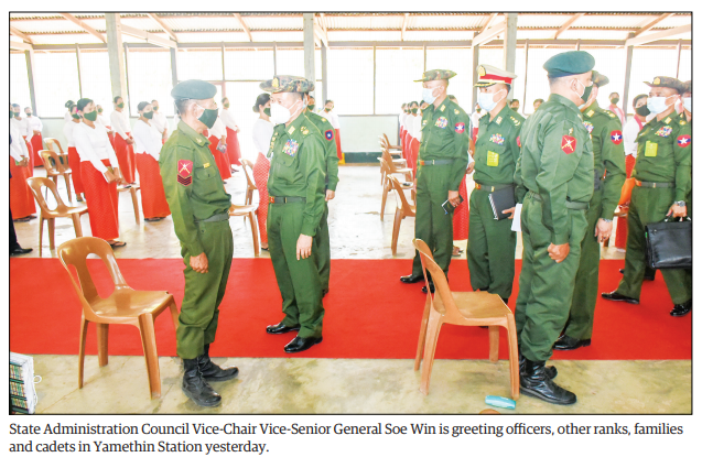 VICE-CHAIRMAN of the State Administration Council Deputy Commander-in-Chief of Defence Services Commander-in-Chief (Army) Vice-Senior General Soe Win met officers, other ranks, their families and cadets in Yamethin station separately and delivered addresses yesterday.