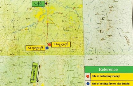 The Tatmadaw convoy conducted security operations at the place where KIA collected money and destroyed the rice trucks.