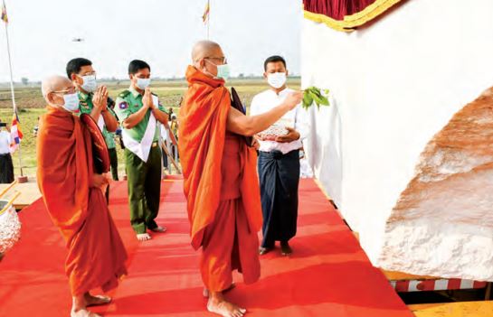 Venerable monks, Lt-Gen Kan Myint Than of the Office of the Commander-in-Chief (Army), Commander of Central Command Brig-Gen Ko Ko Oo and officials sprinkled scented water on the parts of the Buddha image and the throne, which will early leave for Nay Pyi Taw Council Area.