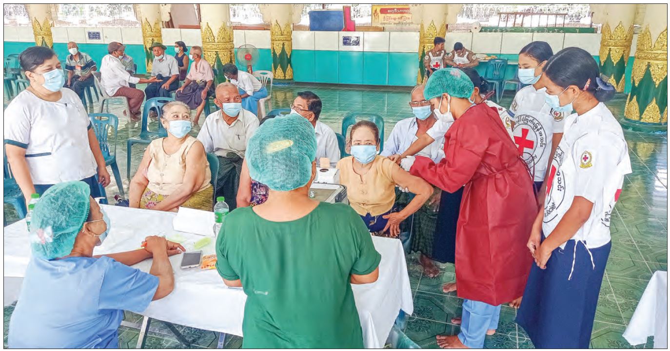 The health team led by Dr Khin Maung Yin, the head of the township public health department, provided the COVID-19 vaccine. Before having a vaccination, the health team checked the body temperature and blood pressure. Only those who are in normal health condition were injected with the COVID vaccine. After giving the injection, those vaccinated persons were also observed for 30 minutes and providing healthcare.