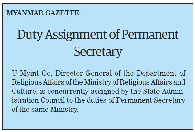 Submitted by moiuser on 24 April 2021 Duty Assignment of Permanent Secretary #The_Global_New_Light_Of_Myanmar