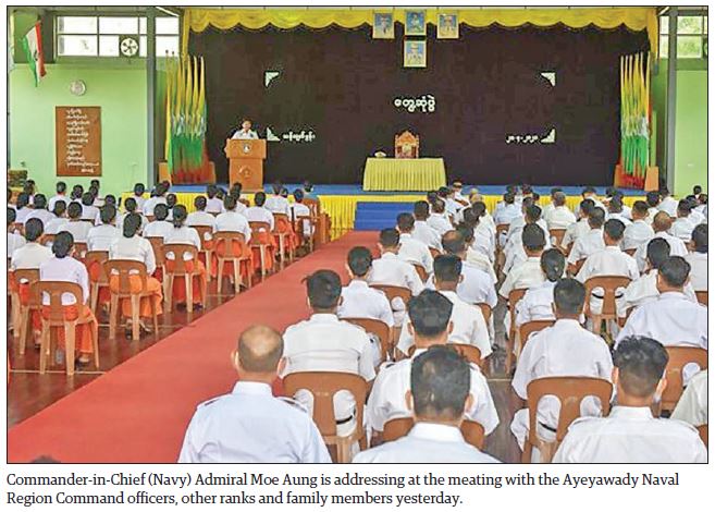 COMMANDER-IN-CHIEF (NAVY) Admiral Moe Aung met officers, other ranks and their families at the Thiha Thura Tun Tin Hall of Ayeyawady Naval Region Command Headquarters yesterday morning.