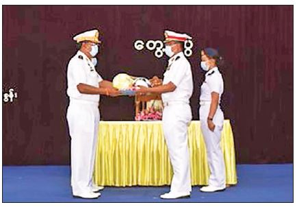The commander of Ayeyawady Naval Region Command and military officers received foodstuffs, fiction and non-fiction books and sports gears, respectively, presented by Admiral Moe Aung.