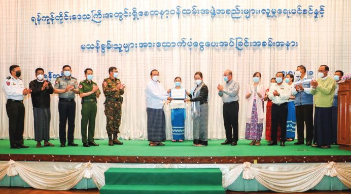 The Union Minister and of-ficials presented K794.199 mil-lion for charity organizations from Yangon Region, K951.27 million as social pension to 31,709 senior citizens, K2.61 million for 78 disabled persons from the region, K22.4615 million as cash assistance for storm victims of Yangon Region to the chairman of Yangon Region Administration Council and officials.