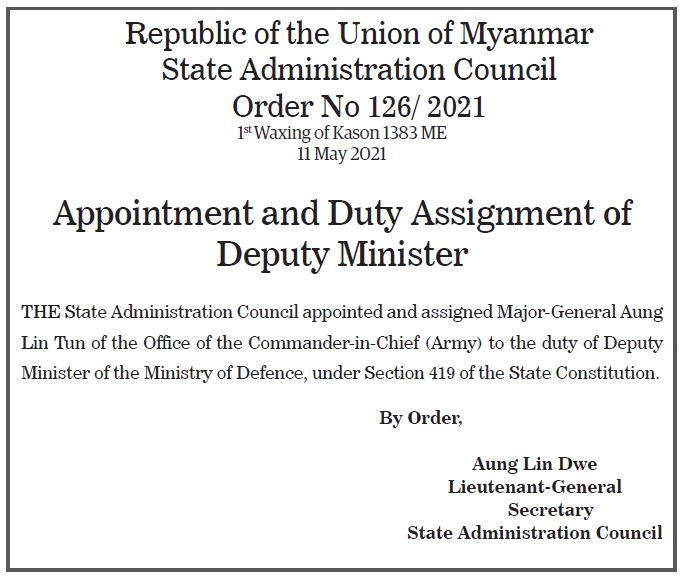 Submitted by moiuser on 12 May 2021 Appointment and Duty Assignment of Deputy Minister #The_Global_New_Light_Of_Myanmar