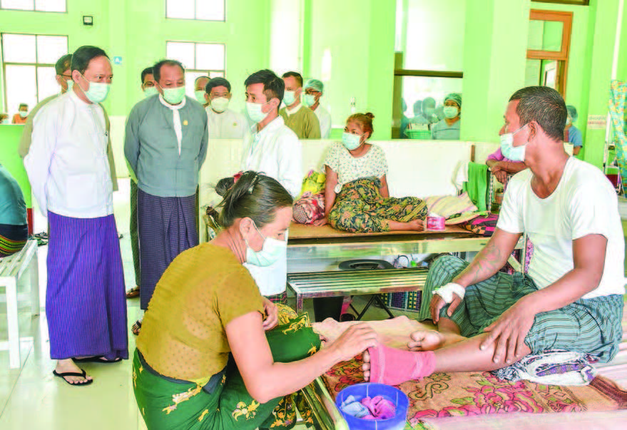 On his inspection tour, the Union minister viewed round the inpatient wards and the emergency unit at Aunglan Hospital. In meeting with health staff and town elders, the Union minister said the ministry provides necessary medicines, including snake venom, to the hospital. He stressed the need to specially take care of preventive measures for variant Covid-19 virus not to enter the country.
