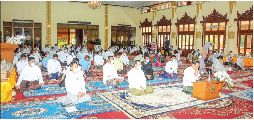 The Union Minister and of-ficials donated cash and offerto-ries to members of the Sangha and the congregation listened to the sermon delivered by Yan-gon Region Thanlyin Minkyaung Pahtamapyan monastery Sayadaw Agga Maha Pandita Bhaddanta Candima Bhivamsa, and shared the merits they gained.