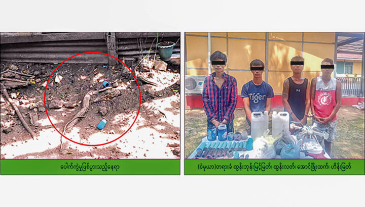 According to the investigation, the police arrested the suspect Tun Phone Myint Myat in Say Yay Ward of Pyay Township. Also, they detained another three suspects Aung Phyo Htet, Hein Myat and Tun Latt, at their respective houses with explosive materials based on his testimony.