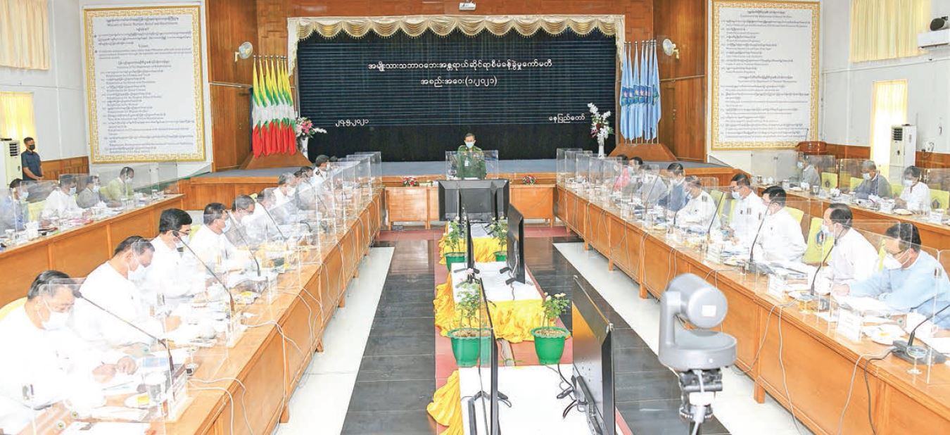 VICE-CHAIRMAN of the State Administration Council Deputy Commander-in-Chief of Defence Services Commander-in-Chief (Army) Vice-Senior General Soe Win, who chairs the National Natural Disaster Management Committee, delivered an address at the meeting 1/2021 of the Committee, at the hall of the Ministry of Social Welfare, Relief and Resettlement in Nay Pyi Taw yesterday afternoon.