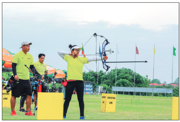 Council Member Jeng Phang Naw Taung, Deputy Minister for Health and Sports U Myo Hlaing, Acting Director-Gener-al of Department of Sports and Physical Education U Tun Myint Oo, President of the Myanmar Archery Federation U Zay Thiha, Deputy Directors General, Directors and officials.The final competitions for compound individual, mix team and recurve individual were held at the ceremony and winners were awarded medals and cash rewards.