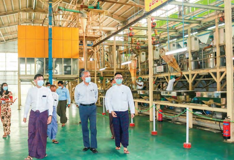 UNION Minister for Investment and Foreign Economic Relations, Vice-Chairman of the Myanmar Investment Commission U Aung Naing Oo visited the Paragon Myay Latt Thar Co. Ltd., and inspected the processing of value-added sesame products, green mung bean and groundnut for export, in Sa Taing Kan Village-Tract, Magway Township, Magway Region in the morning of 29 May 2021.