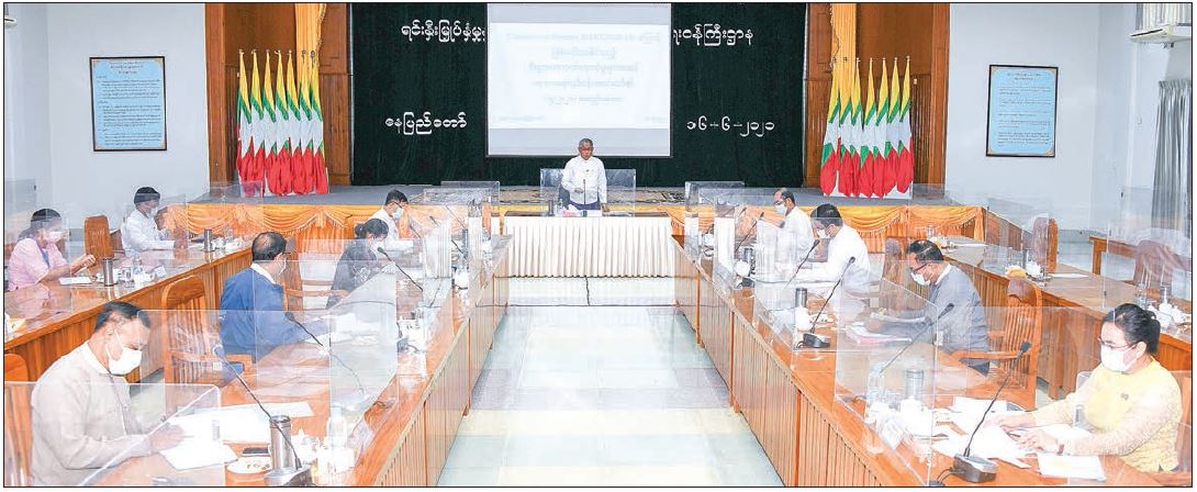 The meeting was chaired by U Aung Naing Oo, Union Minister for Investment and Foreign Economic Relations. Member of the Working Committee Deputy Ministers, from Ministry of Planning and Finance, Ministry of Labour, Immigration and Population and Ministry of Commerce, Deputy Governor of Central Bank of Myanmar and representatives of the ministries concerned attended the meeting. In the meeting, the Chairman of the Working Committee discussed matters on the analytical measures for the effective use of COVID-19 Fund, issues submitted by borrowers who utilized the fund, the processes to be acilitated for the reoperated businesses and the drafting process of Myanmar Economic Recovery Plan (MERP). Moreover, the Chairman discussed issues and difficulties submitted to the Committee and, coordination and cooperation matters among the ministries.
