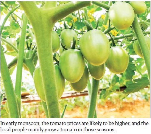 In early monsoon, the tomato prices are likely to be= higher, and the local people mainly grow a tomato in those seasons.