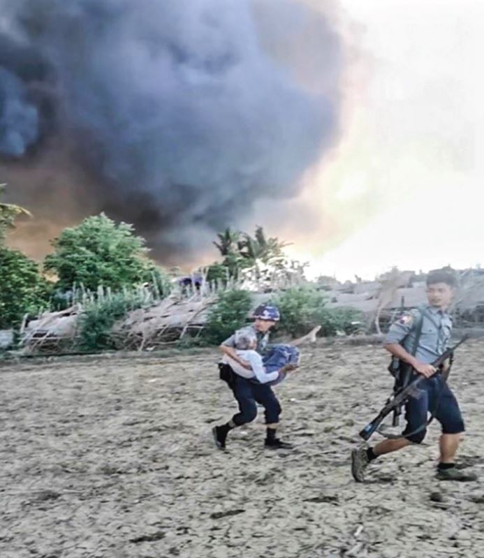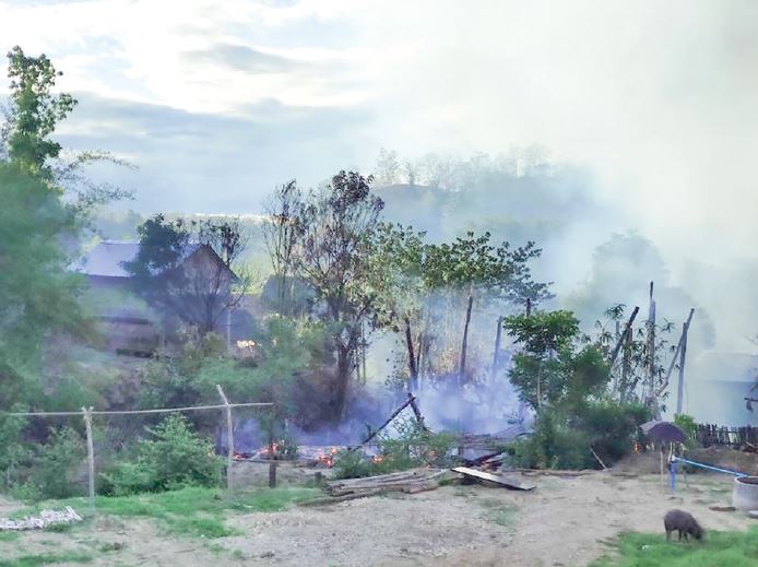 Two women, 83-year-old Daw Khin Su and 81-yearold Daw Htwar Sein were rescued from the burning houses by the security forces and taken to a village monastery that was safe from the fire, and the security forces left the village at 6:30 pm.
