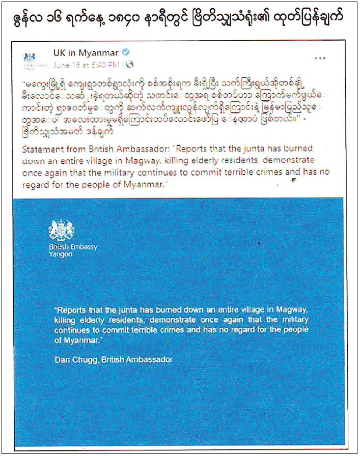 By seeing the fact that Khit Thit media had known that the entire village will be engulfed in flame while the security forces were trying to extinguish the fire and writing a pre-report that stated the fire which was set by the PDF, was set by the security forces although the security forces had not yet arrived in the village, it is clear that this media and the PDF groups are working in a timely manner.