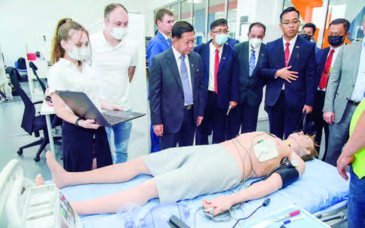 THE delegation led by Chairman of the State Administration Council Commander-in-Chief of Defence Services Senior General Min Aung Hlaing, accompanied by Military Attaché Commodore Kyaw Soe Moe and officials viewed the equipment used at the operation theatre manufactured by Eidos Medicine and Endomedium companies in Kazan of the Republic of the Tatarstan yesterday morning.