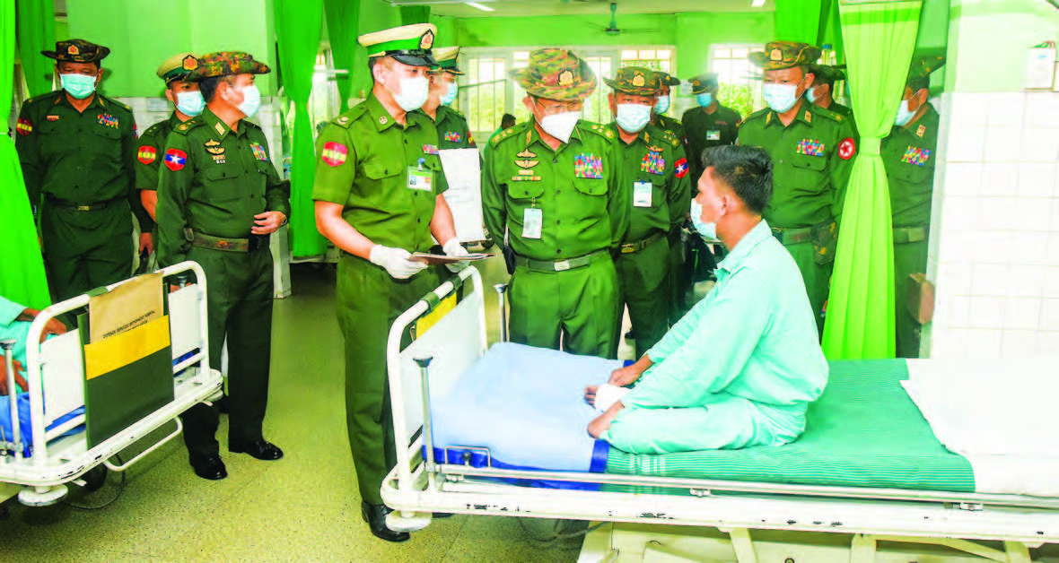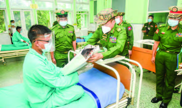 The Vice-Senior General and party cordially comforted officers and other ranks of the Tatmadaw and members of Myanmar Police Force in individuals at the Defence Services Orthopaedic Specialty Hospital and the Defence Services General Hospital (1,000-bed) in Mingaladon Station of Yangon Region, asked about medical treatment and presented foodstuffs.