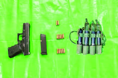 The security troops rushed to the scene and performed necessary security measures. In searching there, they seized one Glock pistol, one magazine, 12 rounds of ammunition and four grenades.