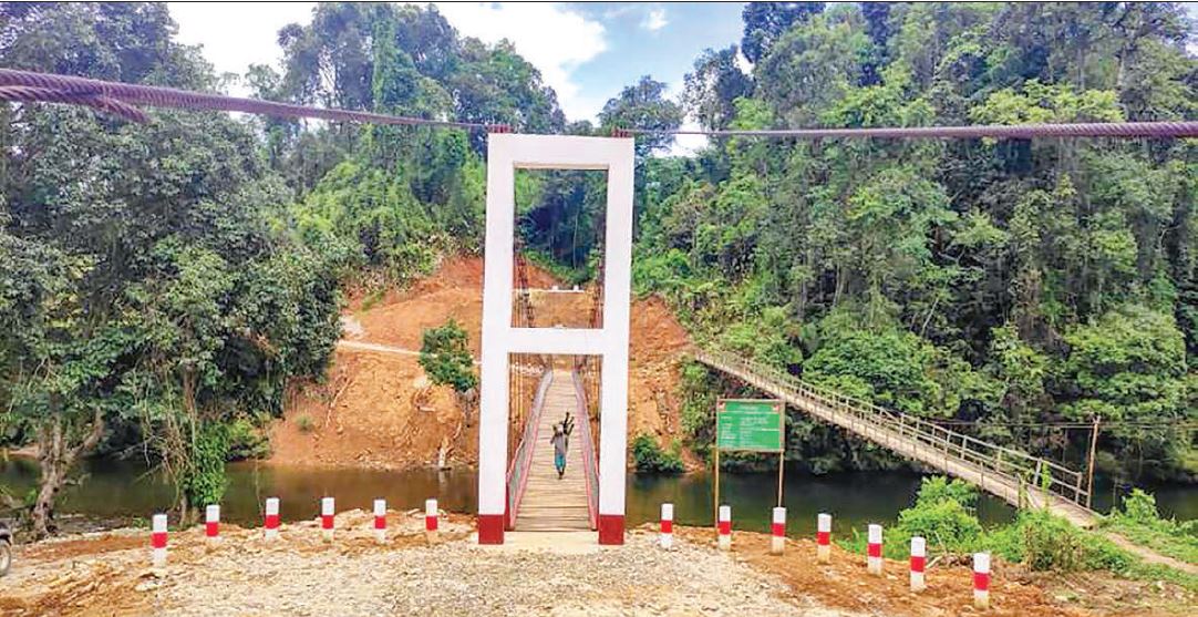 The 200 feet long Htakha cable suspension bridge, about four furlongs from Htanga Village stretching on the road, links Htanga Village and Shangadengchet Village in Machanbaw Township. The project spent K131.67 million of Kachin State budget on construction of the suspension bridge in 2020-2021 financial year.
