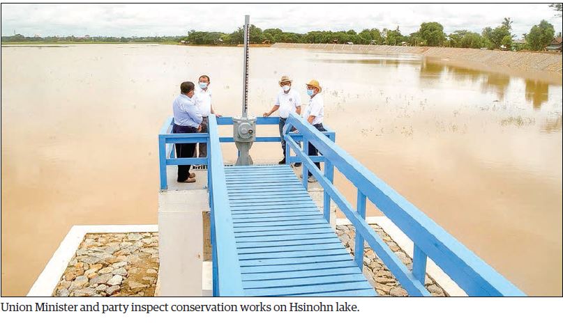 Then, the Union Minister and party inspected the conservation works on Hsinohn lake constructed in 1959 in the irrigated area of Chaungmange Dam.
